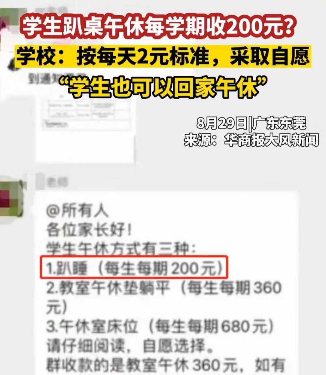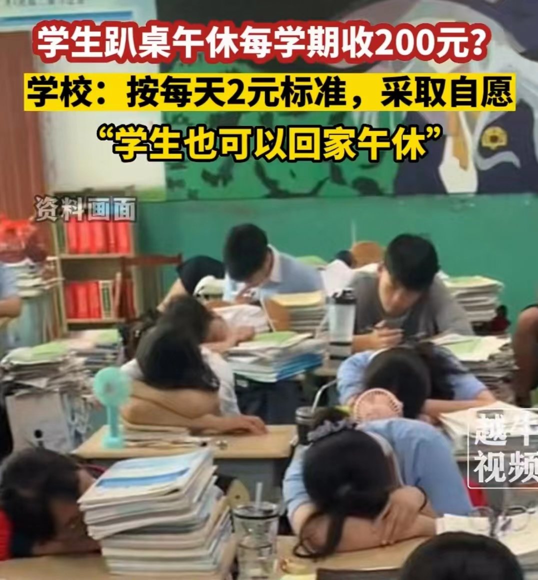 学生趴桌午休每学期200元。巧立名目,学生都不放过?