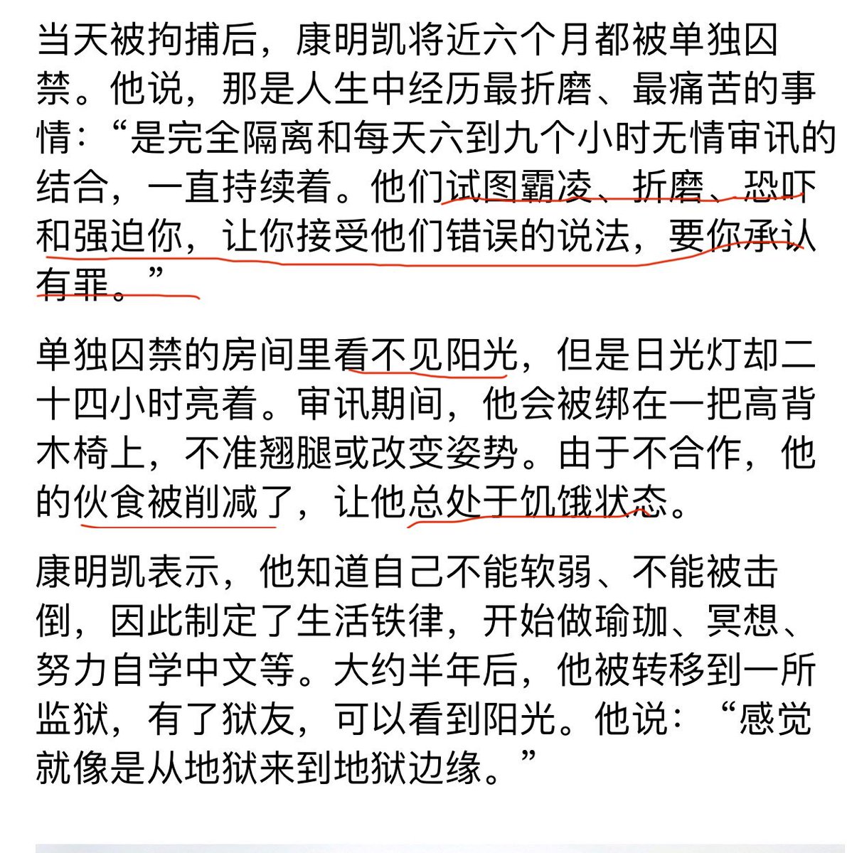 为了换华为孟晚舟回国,中国政府非法拘禁了两名加拿大人,其中一人是加拿大原外交官 。他披露的秘密羁押期间的细节跟 #709律师和公民 的描述几乎一模一样,后者的境况更加残酷,“生不如死”。