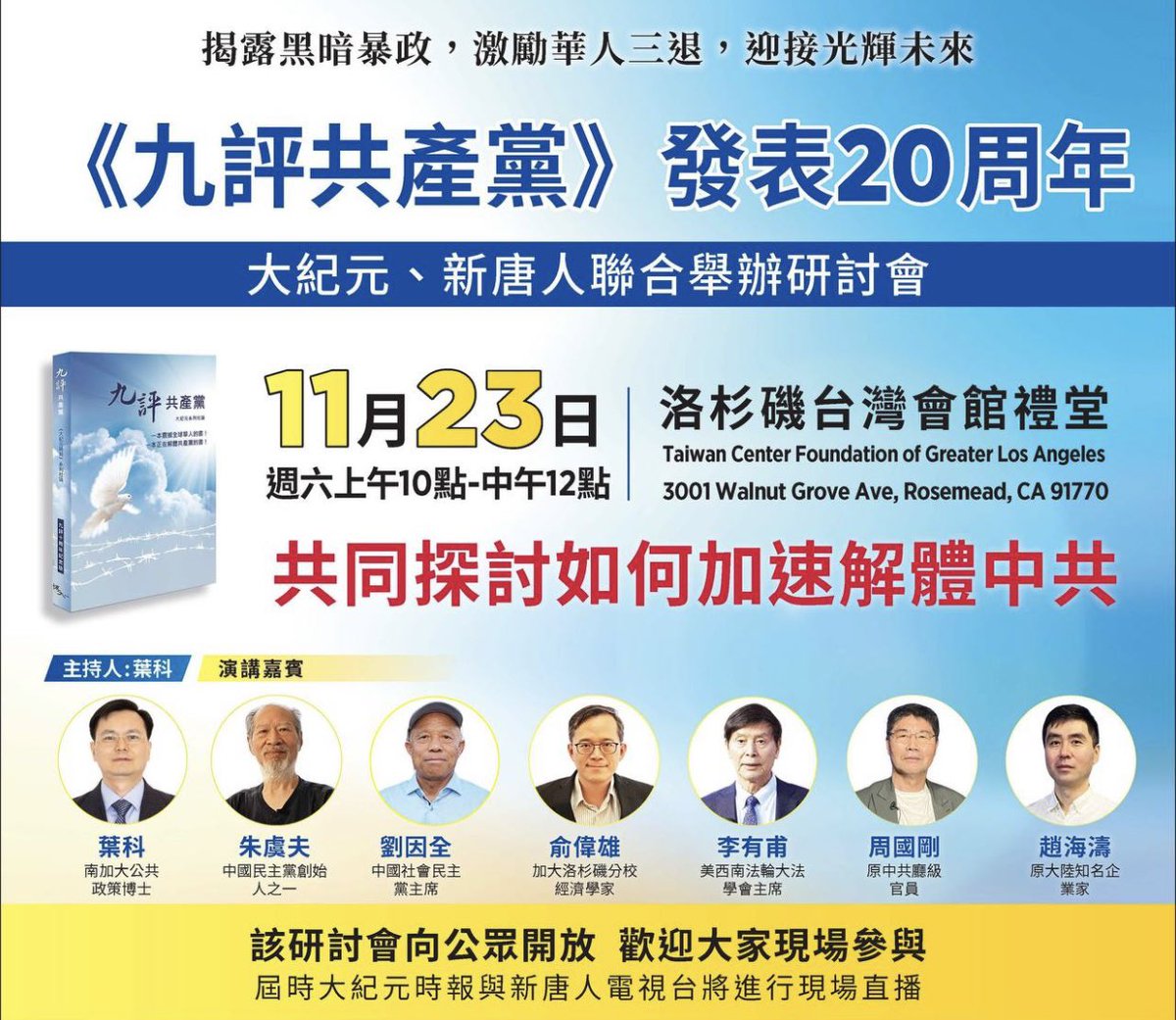今天10:00請支持《新唐人》《大紀元》九評共產黨 研討會、地址:台灣會館活動目前正在進行中⋯⋯