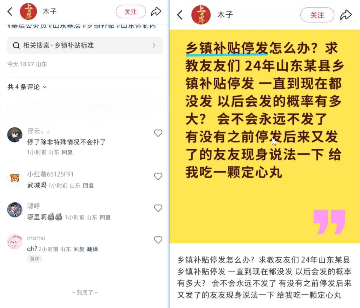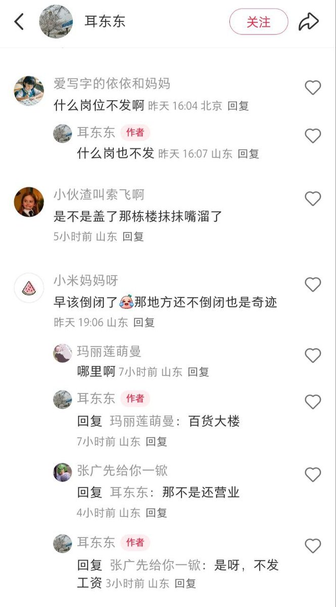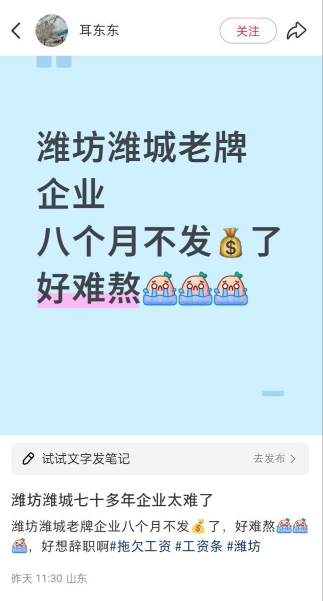 5月19日,山东潍坊百货大楼拖欠工资八个月5月20日,山东基层公务员24年乡镇补贴欠发至今。